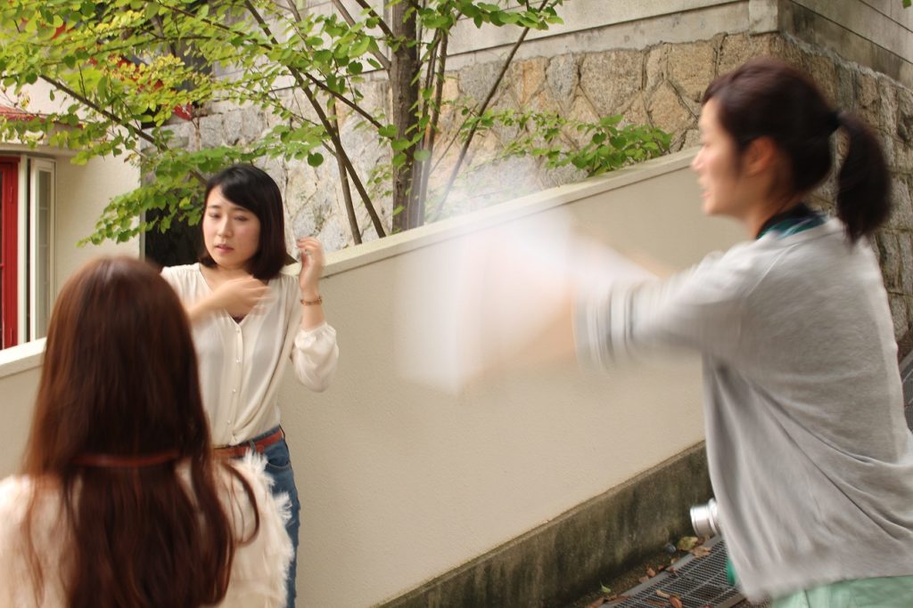お教室内で基本を学んだあとは、グループに分かれてお外でポートレート!